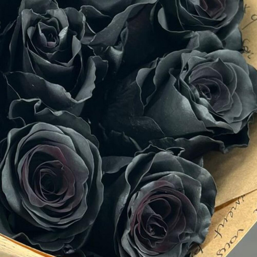 На фото букет из 9 черных роз. В составе: роза 9 шт, дизайнерская упаковка 1 шт, атласная лента 1 шт, . Все цветы свежие и ароматные, букет красиво оформлен и отлично подходит для подарка. Доступна доставка цветов или самовывоз.